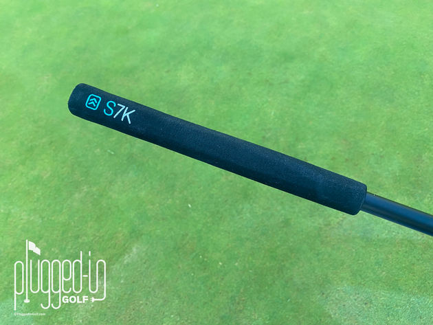 The first thing that I noticed when I picked up the S7K putter is the feel of the grip. To be blunt, it feels like a kid’s toy. In an effort to preserve weight, the grip is made from what feels like Styrofoam, and it took me a little while to get past that. I’ll also note that there’s no tack or traction on the grip which made it slide around a bit in my hands.
