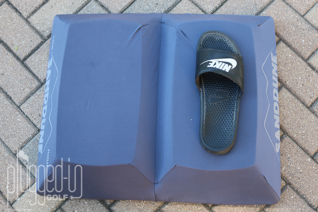 The Sanddune Stepper is essentially a large piece of foam (above you see a size 14 shoe on it, for size reference) divided into two “steps.” Throw it on the ground, and it’s ready to go.