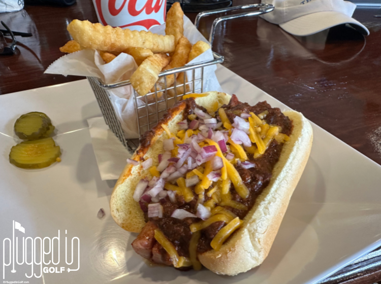 Not only did the Schoolmaster teach me the ways of Northern Alabama golf, it also taught me about great regional food. Specifically, I learned about a dish you must try at the turn, the Trail Dog. As a Chicagoland native, a huge part of my culture is an appreciation for meat-in-tube form; this dog doesn’t disappoint. It’s not just a normal hot dog at the turn.