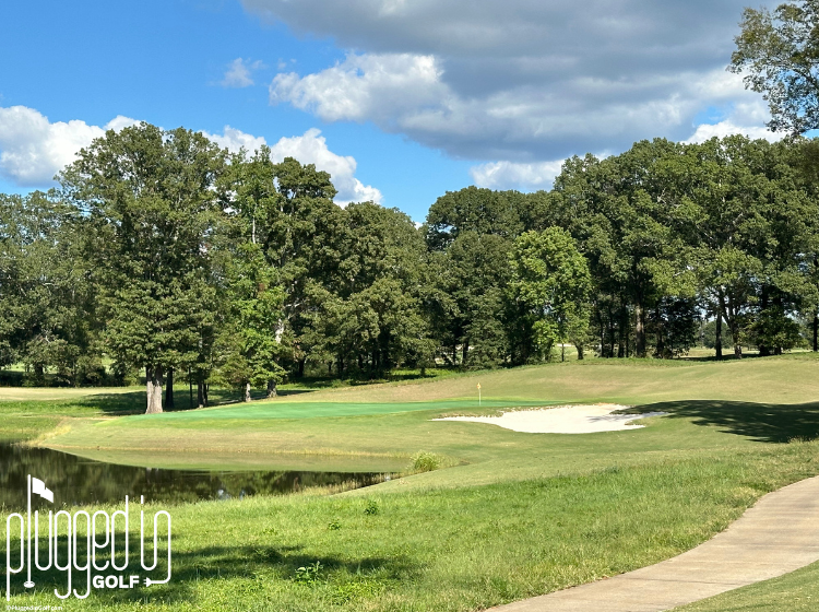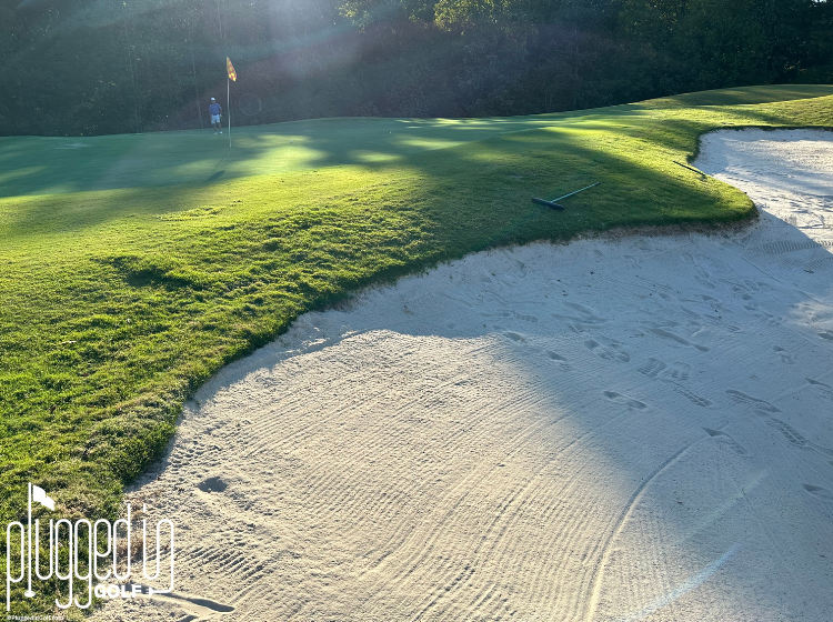 The greens on Schoolmaster are guarded by a multitude of bunkers and often by trees and water hazards. While similar in speed and slope to Fighting Joe, the bent grass greens are decidedly smaller. This gives you shorter putts, but the greens are harder to hold on approach. If your ball does run through, the rough is not particularly punishing, but the bunkers certainly can be. With many holes featuring more than one bunker and extremely soft fluffy sand, finesse will be needed to be successful.