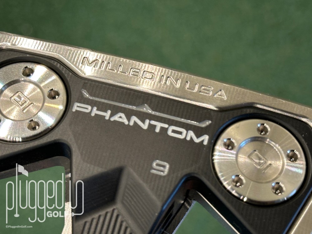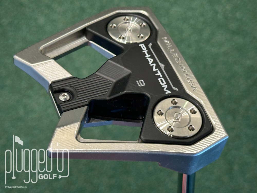 The Scotty Cameron Phantom 9 putter has an angular, “aerospace-inspired” shape and a large footprint.  Very forgiving.  Premium, soft feel.
