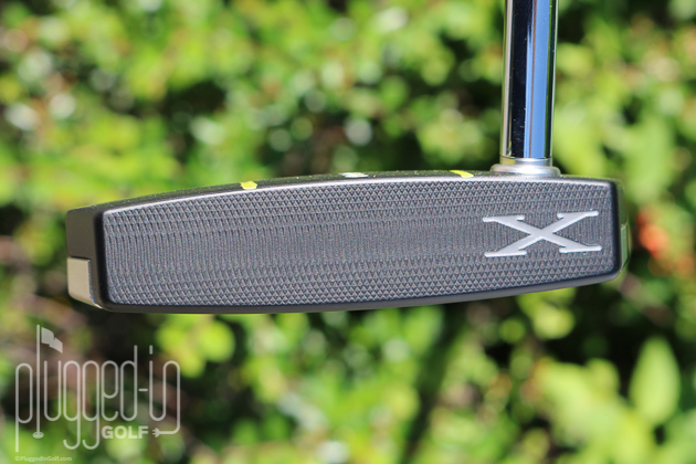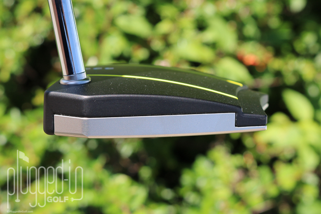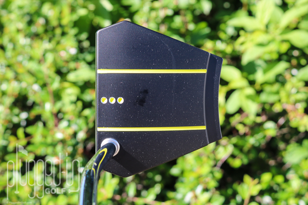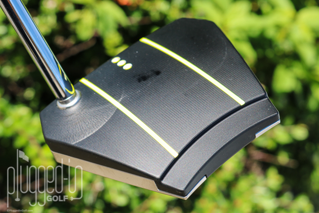 Cameron refers to the Phantom X 8 as having “continuous alignment.” Because there is no traditional top line, the milled alignment lines run the length of the putter uninterrupted. The three dots define the sweet spot. I prefer a putter without alignment aids, so I was surprised at how much I liked the look of the Phantom X, especially how the lines frame the ball. The bright yellow paint will likely be a turn off to some, but it does provide sharp contrast.