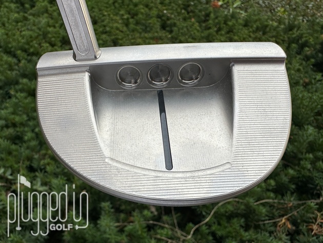Something that has carried forward from previous generations is the multi-material construction. Most of the Scotty Cameron Super Select GOLO 6 is milled from stainless steel, but the sole plate is aluminum. This allows more weight to be pushed to the perimeter of the putter to boost forgiveness. This is an effective technique, giving the GOLO forgiveness superior to most traditional mallets but short of the extreme modern putters. Small mishits are barely noticeable in terms of distance loss or direction, but larger mishits will stop well short of the hole.