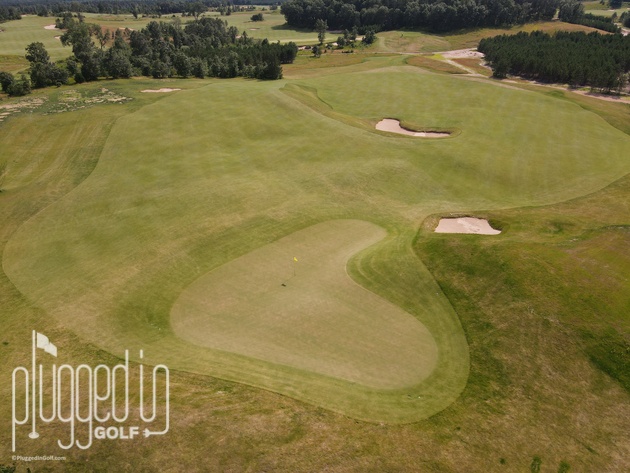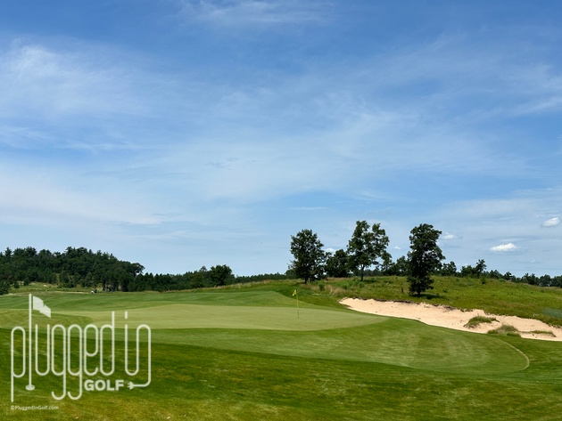 The size of the greens is the features that most distinguishes Sedge Valley from its counterparts at Sand Valley. Though not objectively tiny – they have an average depth of 38.4 yards – these greens feel small. That’s the result of the contours, the shape, and the way they’re presented to the approaching golfer. Take a careful look at the pin sheet to discover where there might be unseen green that you can use.