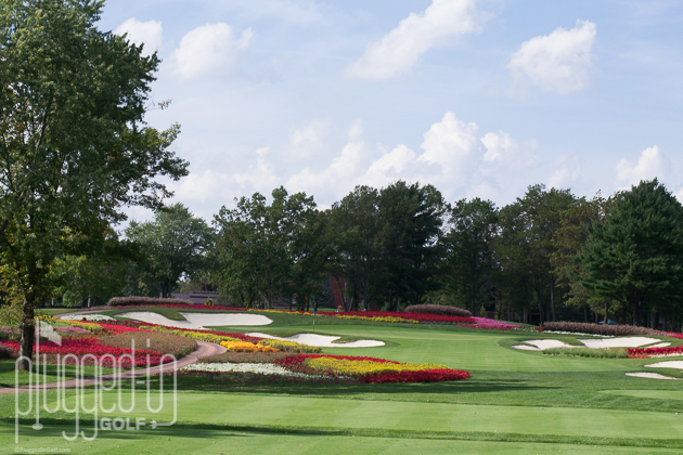 Of particular note is SentryWorld’s sixteenth hole, shown above, which plays like an island green amidst a sea of flowers.