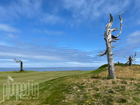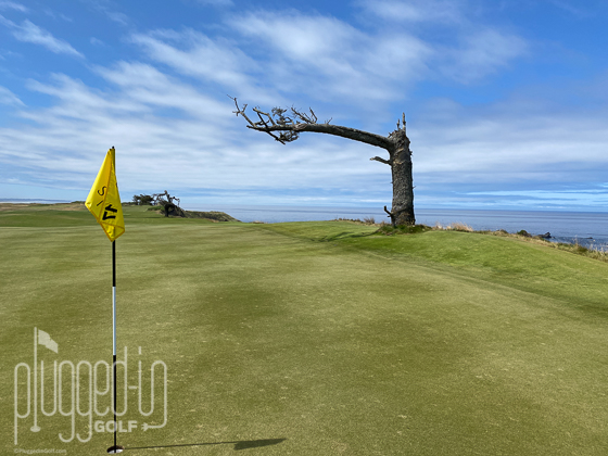 The greens at Sheep Ranch have the overall flavor of Bandon Dunes – large, firm, and full of character – but are substantially toned down compared to Pacific Dunes or Old Mac. You can find some rollercoaster breaks, but they’re outnumbered by more subtle swings.