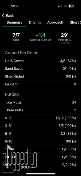Two other things I love are the breakdown of putting stats into different distances and the “Key Stats” category (above, right, top). If you’re a higher handicap player who wants to shave off strokes as fast as possible, focus on those Key Stats and you’ll see your scores plummet.