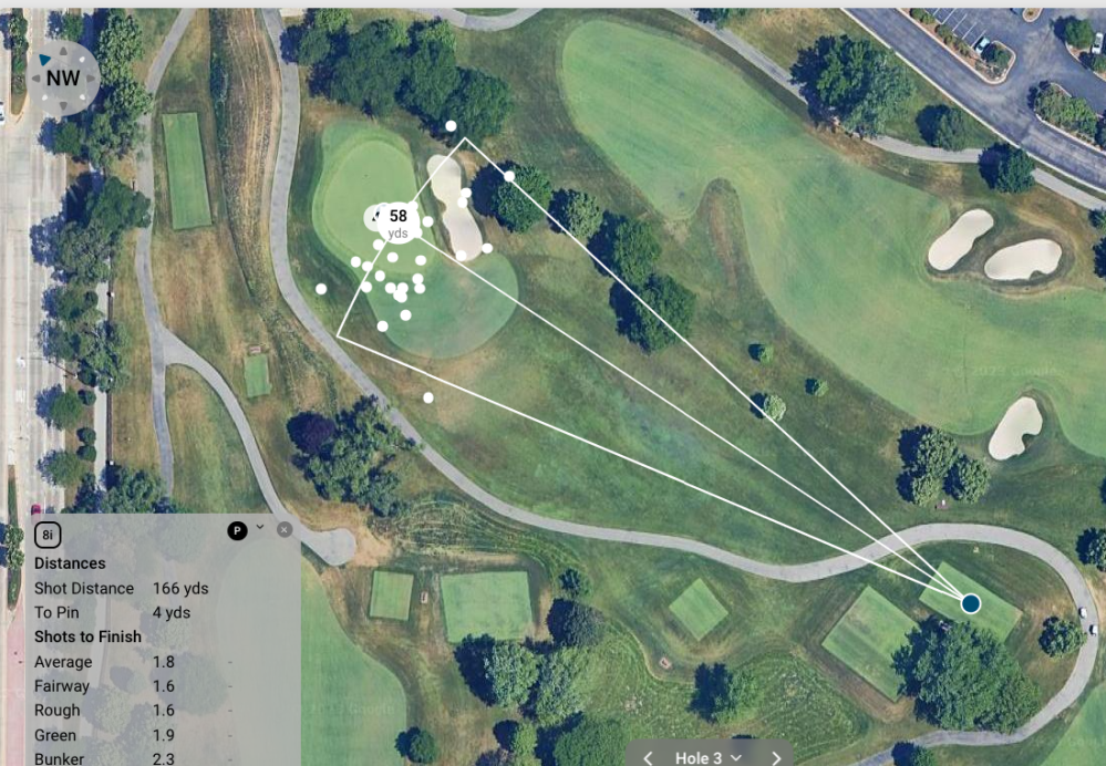 Many people would say, “You should just hit 3W,” but MyStrategy shows clearly why that is not the move. My 3W adds 60 yards to my approach! This raises my expected shots to finish by 0.4 shots. By hitting driver, I’m saving almost half a shot just on this hole. If that doesn’t show the value of Shot Scope MyStrategy, I’m not sure what will.