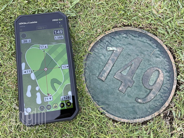 The SkyCaddie Pro 5X retails for $399.95 and includes a 360 Double Eagle plan that otherwise goes for $59.95.  That annual membership plan includes over 35,000 golf courses worldwide.  SkyGolf also has a $49.95 Eagle plan that covers courses in the U.S.A., and a $29.95 Birdie plan that covers one state.  If you don’t purchase a plan, the 5X will still provide “limited front, center, back information.”  And before moving on to comparisons, it’s worth noting the SkyCaddie Pro 5X also includes shot tracking, scoring, stats, and a host of Intelligent Automation features like auto-hole advance and auto-zoom.