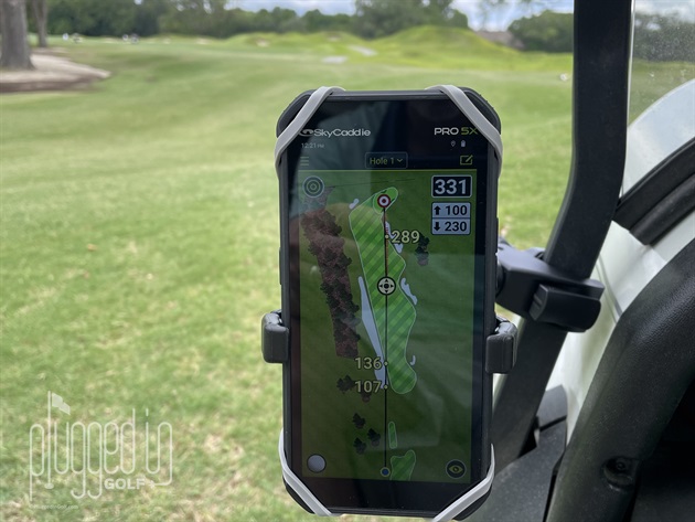 The large LCD touchscreen of the SkyCaddie Pro 5X made the data easy to read and the course easy to navigate.  Although thin, I didn’t like keeping the Pro 5X in my back pocket, but the rugged construction made it easy to keep handy in my golf cart or pushcart.  I ended up getting a cart mount so the display was always at my fingertips – and easy for my playing mates to see.