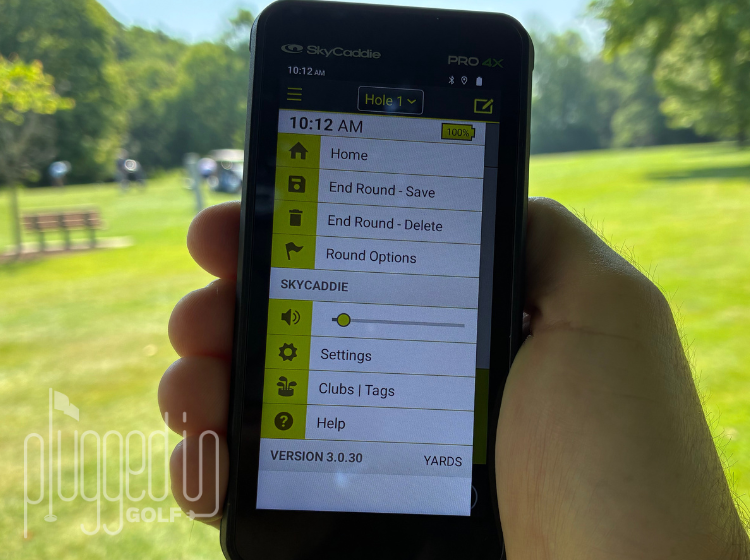 There are volume up and down buttons in addition to the power button, but everything else is controlled with the touchscreen. I didn’t need directions to start my round as the device moved intuitively with my location and picked up what hole I was playing without any user input. The biggest compliment I can give a tech product is that everything just made sense. I never needed to review the directions to figure out what icons I had to press to log my score, see a water hazard, or adjust a pin. The navigation was straightforward and user friendly.
