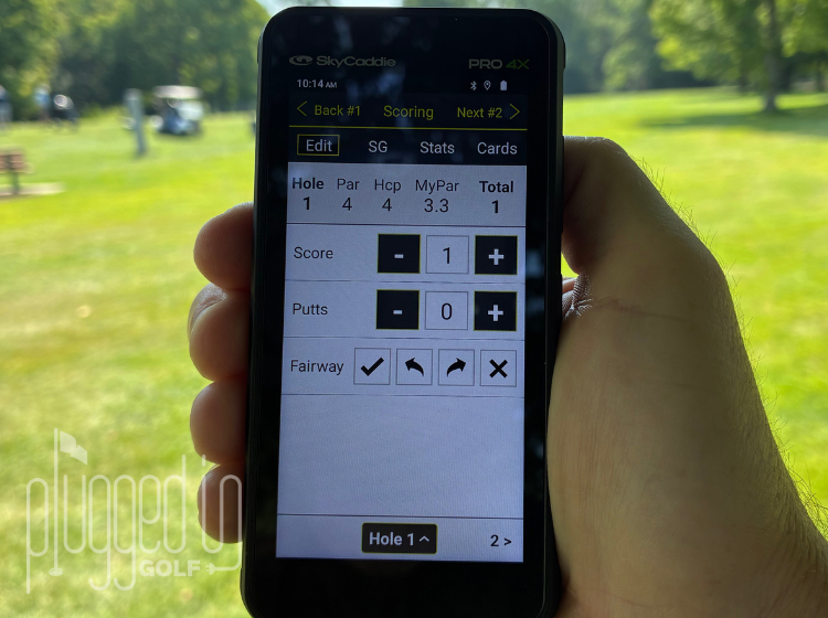 There are volume up and down buttons in addition to the power button, but everything else is controlled with the touchscreen. I didn’t need directions to start my round as the device moved intuitively with my location and picked up what hole I was playing without any user input. The biggest compliment I can give a tech product is that everything just made sense. I never needed to review the directions to figure out what icons I had to press to log my score, see a water hazard, or adjust a pin. The navigation was straightforward and user friendly.