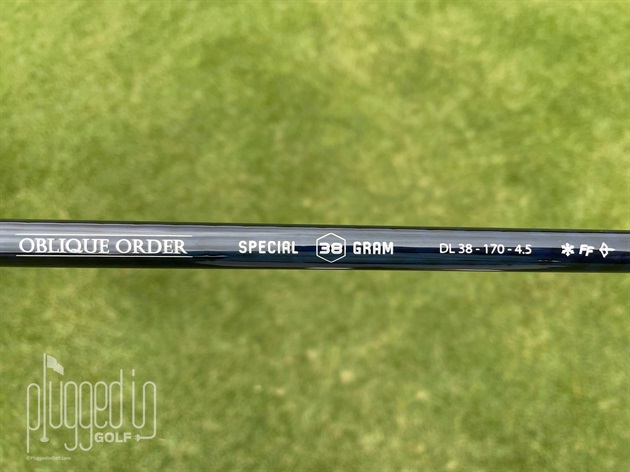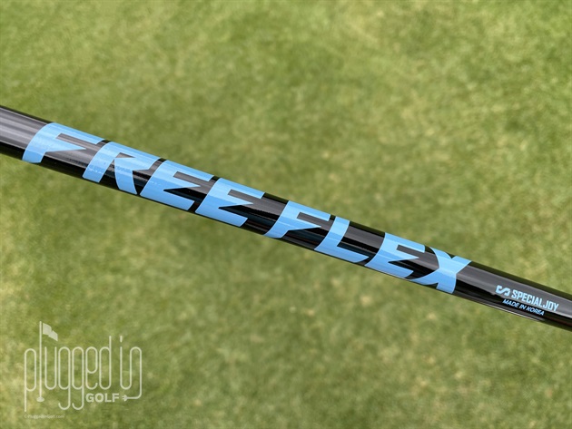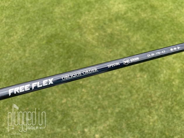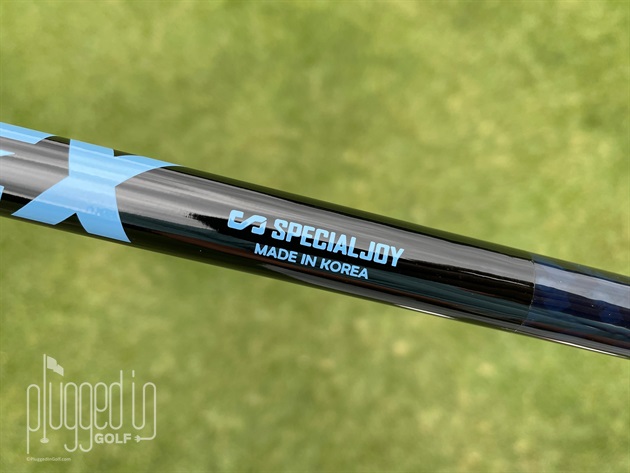 In the matte blue carbon version, the Special Joy FreeFlex shaft has a wonderfully subdued presence that my photos don’t do justice. The large, light blue “FREEFLEX” lettering was covered by the grip, leaving just a modest section of branding and specifications that were installed in the down position. A graphic towards the tip denotes the spine, which Special Joy recommends being in the up position.