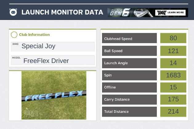My swing speed has been down a bit overall due to injury so I was pleased to pick up 2 mph of clubhead speed on average with the Special Joy FreeFlex shaft. I hit mostly nice draws, but there was a tendency for the ball to stay right of my target centerline. I’m used to swinging lighter shafts, but the FreeFlex truly required me to maintain a good tempo. And it was satisfying to post a 82 mph swing that was 100% playable.