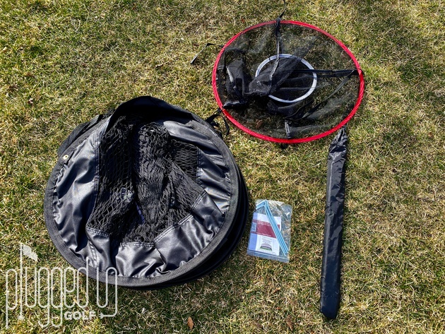 The Spornia SPG-7 golf net comes in a convenient carrying case. When you empty it, you’ll find the net, the chipping target, stakes, and a bag with three collapsible rods. The net wants to pop open without much prompting, so make sure you have space around you and no oblivious bystanders.