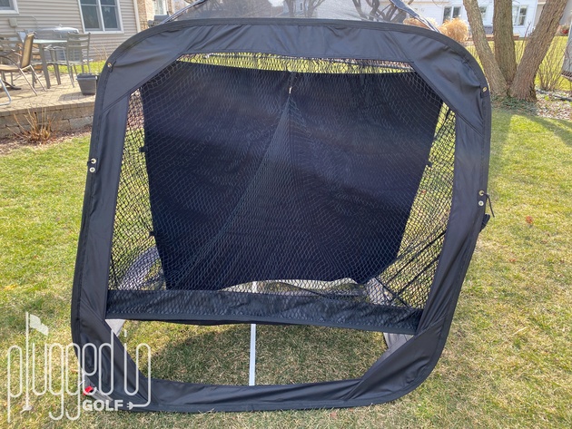 There are two models of the SPG-7, the standard model and the Compact Edition (see them both HERE). Because of the limited space in my garage, I opted for the Compact Edition. This measure 5.5′ X 5.5′ X 5.5′. You can also add a 20″ roof (seen above) which makes it capable of catching all but the floppiest of flop shots. The standard version of the SPG-7 is 7′ X 7′ X 7′ which stretches to 8.5′ with the roof. I was concerned that I wouldn’t feel safe with the smaller version, but I’ve found that a 5.5′ span will catch some awful shots with room to spare.