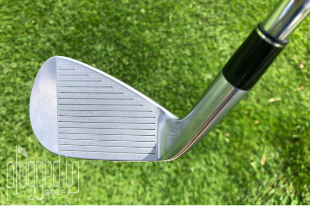 These are handsome looking clubs. They have a compact blade length with virtually no offset. In the bag, they look classic and clean, with just a slight twist. Just like the previous iterations of this club, the focus is on the classic shape and modest cavity back. The twist comes in the form of a two-tone look. The majority of the iron is shiny chrome, but the club face, top line, and forward part of the Tour V.T. Sole are a matte finish that looks great and performs well in the bright sun.