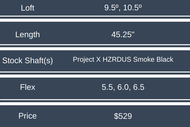 The Srixon ZX7 driver comes stock with the Project X HZRDUS Smoke Black [review HERE]. This shaft is great for the faster, more aggressive swinger, and it accentuates the ZX7’s lower spinning, lower launching tendencies.