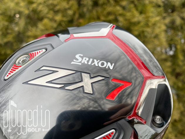 Flipping the club over reveals bold branding across the sole. The red and silver pop off the black base color. With the emphasis on the “ZX7” and the geometric design, the two weight ports fly below the radar.