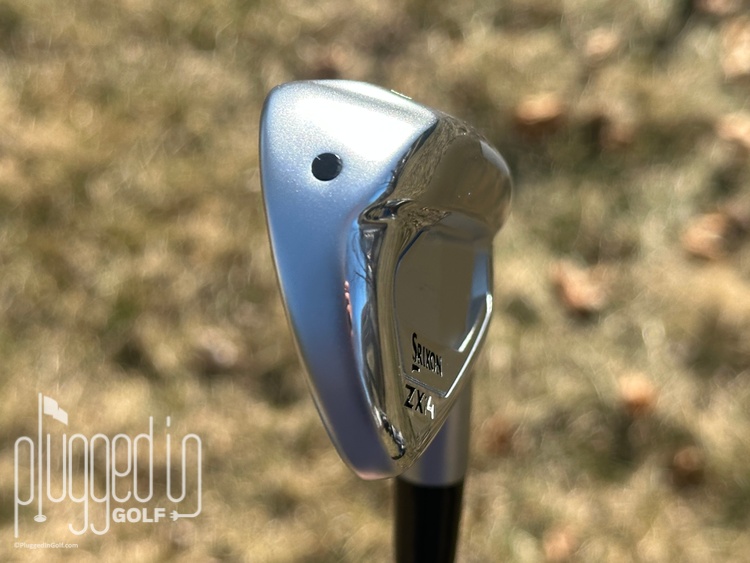 In the bag, you need a discerning eye to tell the Srixon ZXi4 irons from the ZXi5. On both sets, the branding is moderately sized and placed in the toe. They have a similar shape to the cavity, and they have the same excellent finish that mixes a few different silver tones. The one key difference is that the ZXi4 has a small black dot on the toe which indicates its hollow body design. All that to say, you’re going to catch a lot of people taking long looks if you have the ZXi4 irons in your bag.