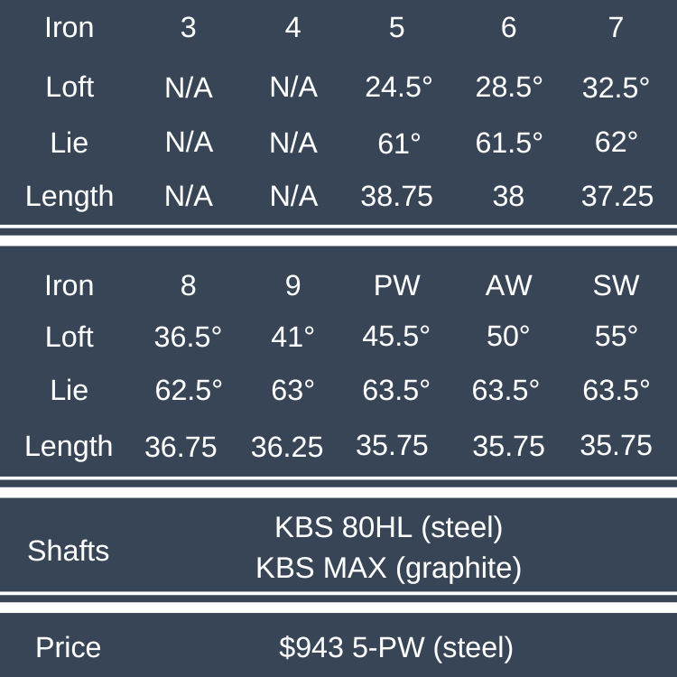 One note regarding shafts.  According to their website, the stock shaft for the Srixon ZXiR HL irons is the KBS 80 HL.  My testing was conducted with the KBS Tour Lite as provided by Srixon.