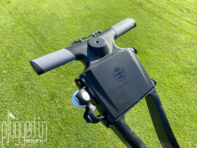 The Stewart Golf Q Follow maintains its sleek design by offering very little storage. At the handle, there’s a compartment that will hold a scorecard, pencil, and not much more. The idea is that you can use a larger golf bag because you’re not pushing or carrying it, and that bag will offer the storage you need.