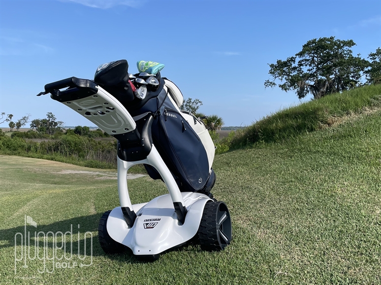 Overall, the Stewart Golf V10 Remote electric cart checks a lot of boxes. Folded or in action, the V10 Remote has a clean, sleek look. The trolley also comes in a metallic silver for those not keen on the Star Wars reminiscent pearlescent white. The V10 Remote was responsive to my commands and course conditions – not surprising when I learned the Cortex microchip conducts environmental assessments 1000 times per second.