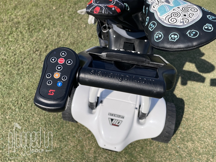 I was pleased with how well the Stewart Golf V10 Remote maneuvered on the golf course. A tap of the left or right button offered slight course alteration, while holding said button got the trolley to a full turn in a hurry. I did have to be mindful of speed when turning, but overall I felt in control. And when in doubt the STOP button was instantaneous.