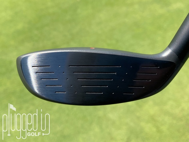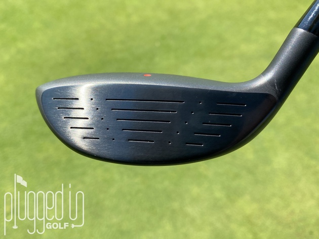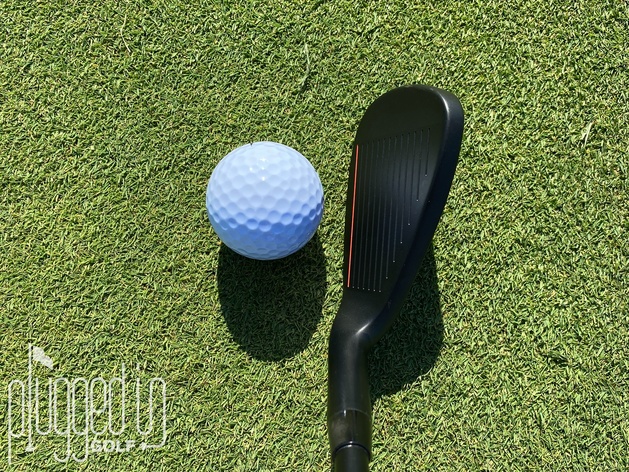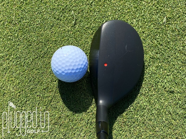 The Stix hybrid has a symmetrical, oval shape at address. Just like the FW and driver, it has a matte black crown with a red alignment dot. The hybrid does want to sit closed, but it’s not as extreme as the FW or driver.