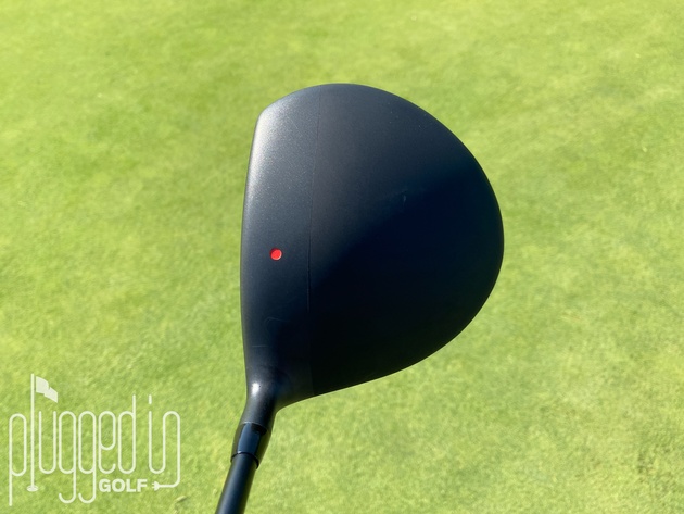 At address, the Stix driver has a two-tone matte black crown. It’s a bit hard to see the difference in the picture below, but if you look carefully you’ll see a straight line from toe to heel just behind the red alignment dot. This club is of average size and is slightly larger on the heel side, though it’s close to symmetrical. What stands out most to me when I set it down is that it is extremely closed.
