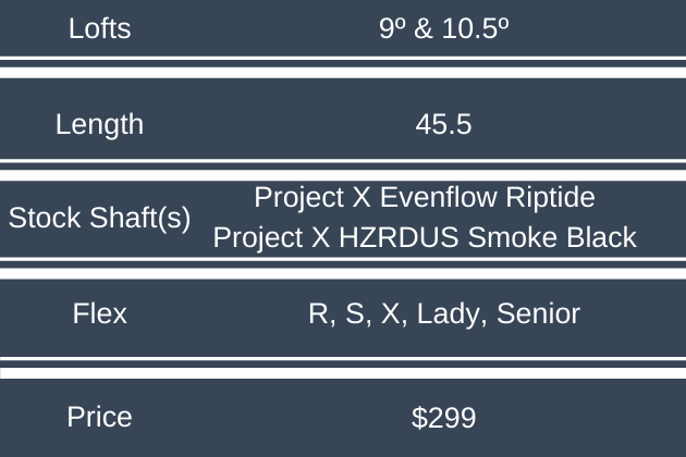 Sub 70 allows for a lot of customization from length to grip to the shaft. There are multiple stock shafts from Project X including the Evenflow Riptide [review HERE] and HZRDUS Smoke Black [review HERE]. And if you’re willing to fork up some extra cash, there are plenty of other shafts you can order with this driver instead, including Fujikura Ventus, Mitsubishi TENSEI AV Raw, and Graphite Design Tour AD models (a $300 upcharge – as much as the driver itself).