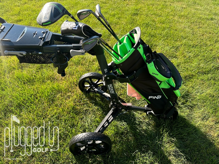 The Sun Mountain Ridgeline 3 push cart performs beautifully on the course. Easy to fold and unfold. Loads of storage and accessories. Adjusts to fit any bag from child-size to staff bag.