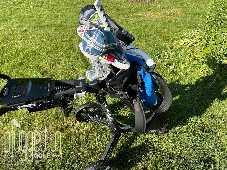 Moving to the Vertical Fit Technology, it works just as promised. For my Vessel Sunday III stand bag [review HERE], I had the height setting near the top to align the strap with the handle of the bag. The straps and brackets adjust easily to accommodate thick cart bags or skinny walking bags.