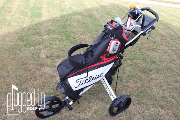Like any push cart, the Speed Cart GX makes walking a whole lot easier and less complicated.  An important part of any push cart is that you want to feel as if the cart is gliding along the turf.  The large wheels roll right over rough terrain, and the ability to adjust the handle to my desired height makes it comfortable to use.  I found that the bag’s angled positioning keeps the weight distributed evenly between all 3 wheels and almost makes the cart feel lighter than it is.