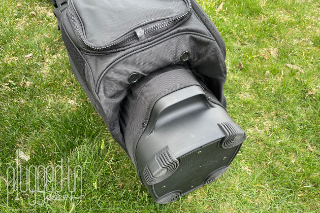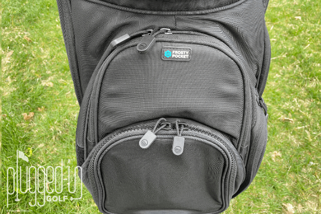 Each of the remaining 12 pockets on the Big Rig has a purpose. A large lower front pocket is lined to keep drinks cold and can hold four cans comfortably. Just to the right of the cooler is a pocket I was especially fond of. It sports two interior stretch sleeves that can hold precious items like ball markers or divot tools. In addition to a variety of large garment pockets and a velour lined valuables pocket, the rear strap makes it easy to transport to and from the parking lot.