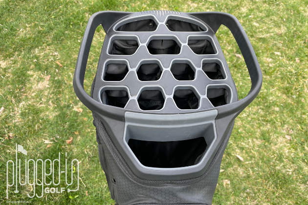 If I were to compare this bag to only other 14 way bags, it would win out over the competition. Not only are the dividers full length but the rigid top prevents clubs from getting scuffed up during the round. It also makes getting clubs in and out of your bag effortless. Occasionally I found some of my MCC Plus Four grips were caught on the way out but because of the rigid dividers, it was easy to redirect and get the clubs out without any additional frustration.