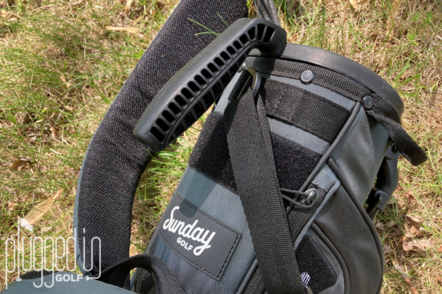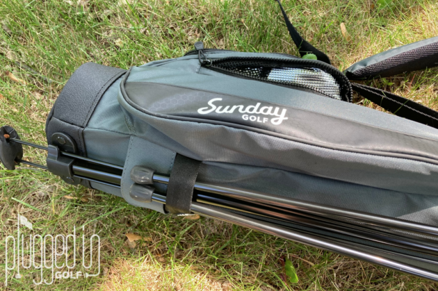 Where many minimal golf bags eschew features, the Sunday Golf Loma XL is packed with them. Perhaps the most significant are the foldable standing legs. Most Sunday bags don’t have them and require you to lay the bag on the ground. As someone who is used to using a stand bag, it’s nice to have that option. If you don’t want to use the legs, you can use a velcro strap to keep them in place.