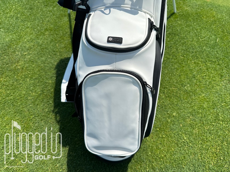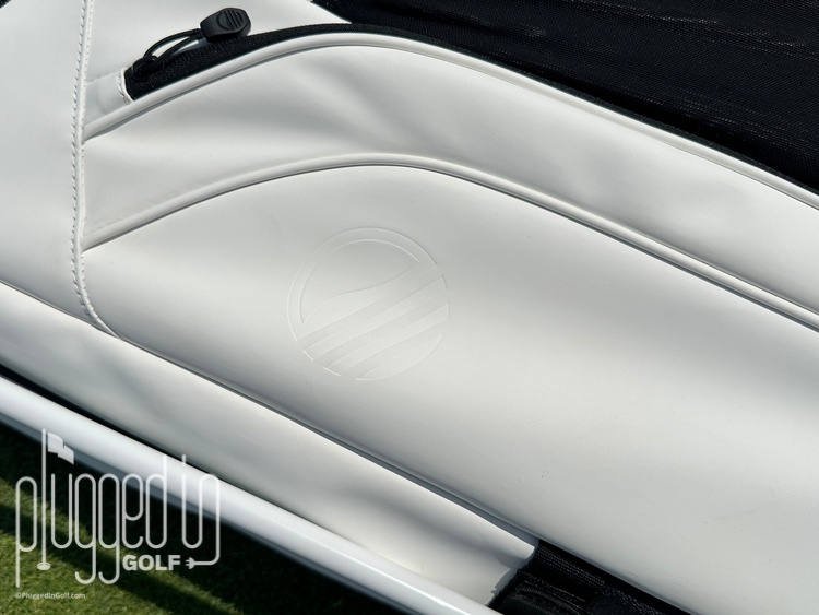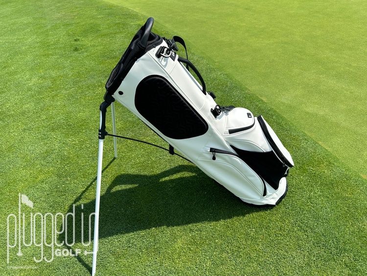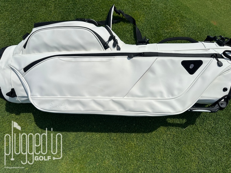 The look of stand bags is changing rapidly.  Thin nylon and huge logos are out; premium materials and timeless designs are in.  The Sunday Golf Ryder S-Class golf bag hops on board with a vegan leather exterior.  You can get the S-Class in all black or black with white trim (seen here).  For me, this panda colorway is far and away the best looking Ryder bag.  The white is bright, providing great contrast against the black elements.