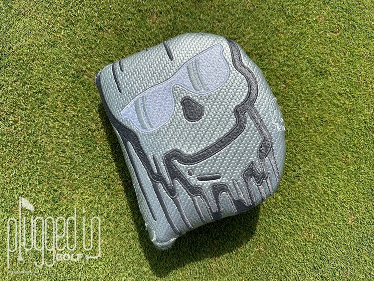 We also have to mention the head cover. The 2024 Core Collection Naked putters – “naked” being a reference to the lack of paint fill – come with a carbon fiber melting skull cover. You’re not going to find a better stock putter cover anywhere, period.