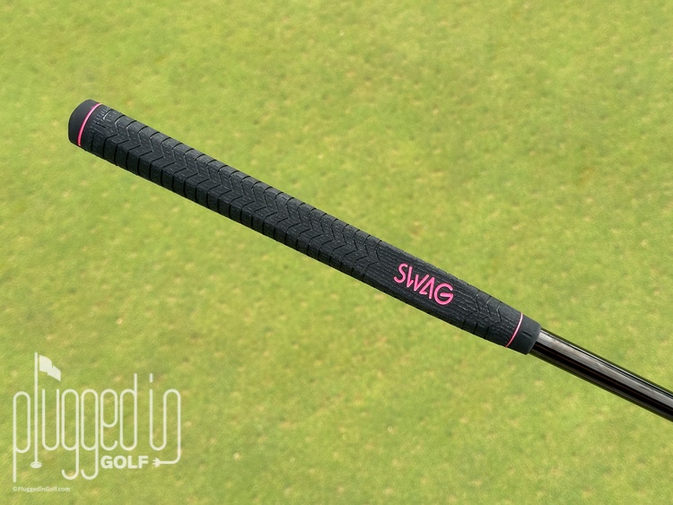 Finally, the SWAG Handsome Too Flow comes stock with the Lamkin Deep Etch grip, which has been my favorite putter grip for the last couple years.  SWAG offers it in eight different colors.  If you opt for the Black PVD version, your list of grip options expands to include the Lamkin Sink Paddle with stacked skulls and the Lamkin Sink Fit [review HERE] with stacked kings, each in four different colors.  You can also choose a leather Grip Master grip for an additional $20.