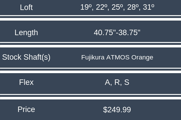 With quintessential TaylorMade looks, the M6 Rescue incorporates Twist Face for consistently straight ball flights. Great forgiveness and solid performance.