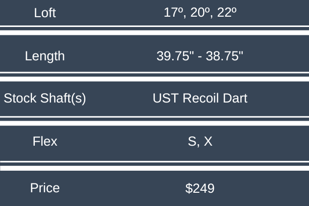 The TaylorMade P UDI is a great option off the tee or as a long iron replacement. Surprising levels of forgiveness. Great shot shaping potential. Mid-low launch with mid spin.