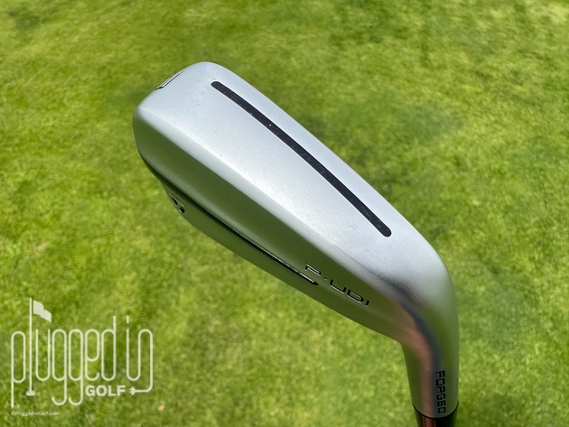 At address, the look hasn’t changed much from previous iterations of the Ultimate Driving Iron. The top line has some heft to it, comparable to a game improvement iron. There’s a modest amount of offset, but the blade length is fairly compact. The P UDI does look a bit slimmer than the Stealth UDI, and I prefer the matte finish on the toe and hosel.
