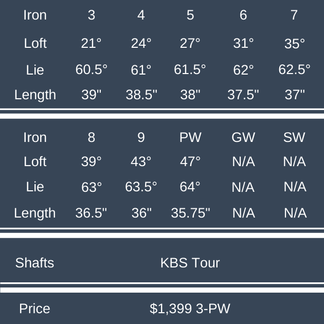 The TaylorMade P7MB irons are classic blades with a modern in the bag look. Great feel if you absolutely pure it. Virtually no forgiveness.