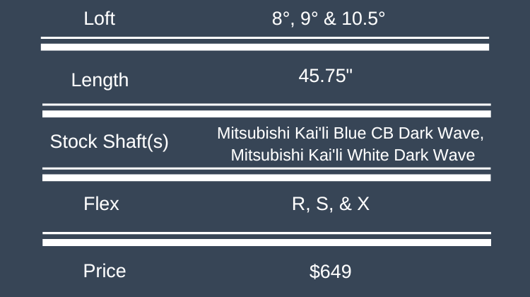 With so many variables in the TaylorMade Qi35 LS driver, it’s important to get fit.  While TaylorMade offers two stock shafts in the Mitsubishi Kai’li Blue CB Dark Wave and Mitsubishi Kai’li White Dark Wave, they also have an extensive list of no upcharge shafts available through customization on their website.  The TaylorMade Qi35 LS driver comes in at $649.
