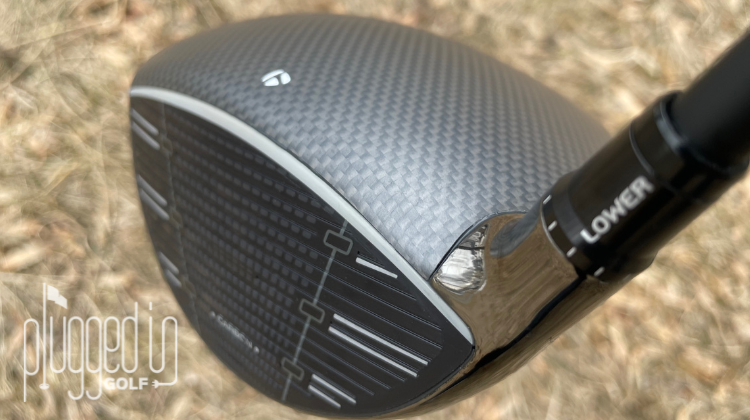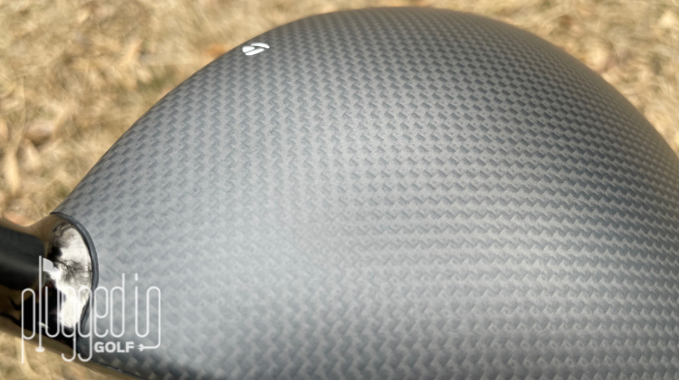 At address, the TaylorMade Qi35 LS driver is wrapped in the same matte grey carbon fiber material that is seen on the sole.  TaylorMade engineers continued to use the Infinity Carbon Crown.  The old TaylorMade signature ribbon leading edge design (last seen on the TaylorMade Stealth 2) is now firmly in the rearview mirror.