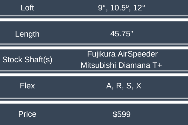 Stock Fujikura AirSpeeder regular flex. Rollout is just pure power – HA! The MAX is looking good for replacement at the moment. Waiting to test the core model – stay tuned.