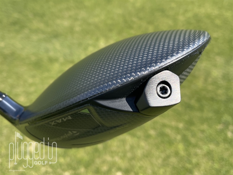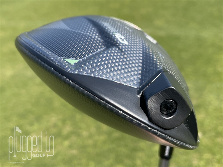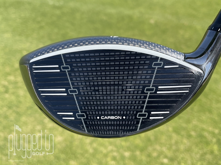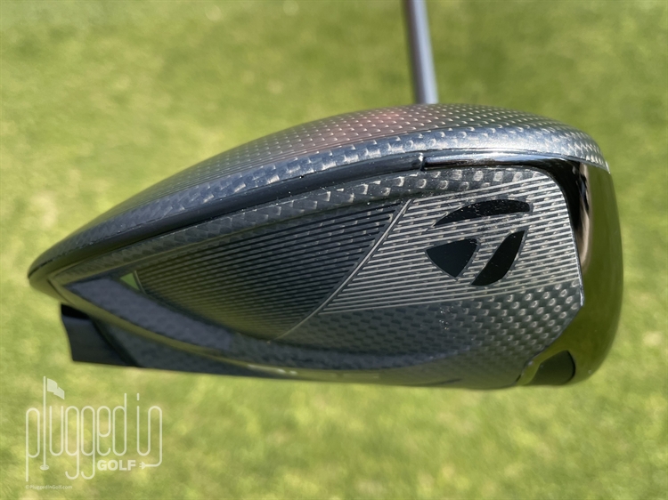 Changes to the face appear to be mostly cosmetic even though this is TaylorMade’s fourth generation carbon Twist Face. But there’s a bit more to this story. Those small blue rectangles on the face are actually reflective fitting markers – a big deal for fitters with a GC Quad or Trackman launch monitor. I was glad to see TaylorMade kept the light grey segment across the top edge that provides a solid reference for squaring up the club head.