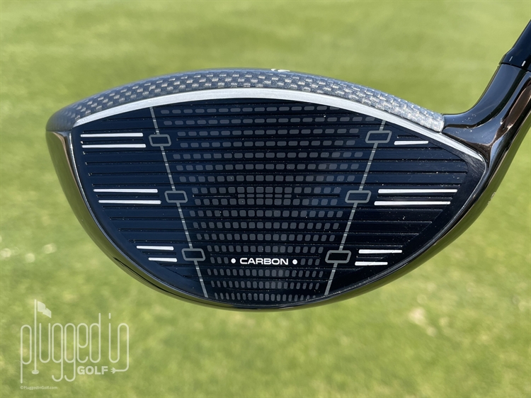 Back to the crown, TaylorMade refers to the shape as “high inertia.” The black graphite composite that encompasses the entire crown takes on a dark grey hue under some the light conditions. A small logo “T” denotes the true center of the face – something I had to remind myself of when setting up at address.