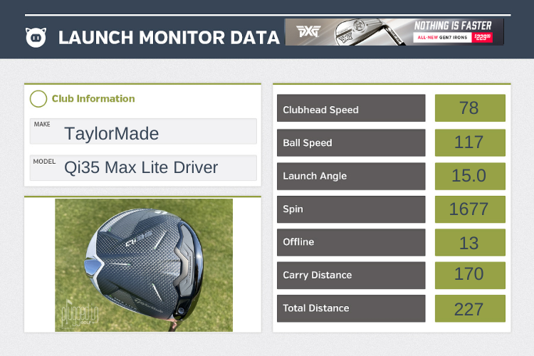 TaylorMade lists the Qi35 Max Lite driver as High-Launch and Mid-Spin, but my results were more on the lower side of those categories. And even though I struggled at times to make squared, centered contact, the Qi35 Max Lite was very forgiving. I have no doubt of the veracity of TaylorMade’s proclamation of “more distance from more of the face.”